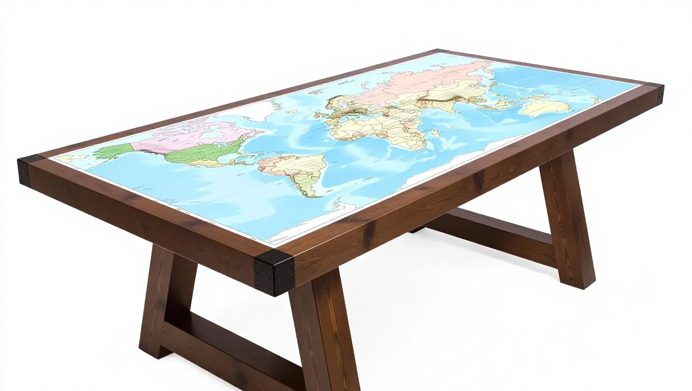Create a unique AI-generated table design with a fully map-covered surface using vivago.ai. Transform text prompts into custom furniture concepts featuring intricate cartographic patterns, ideal for geography-inspired interiors or creative spatial visualization projects. AI-powered tools ensure professional-grade details.