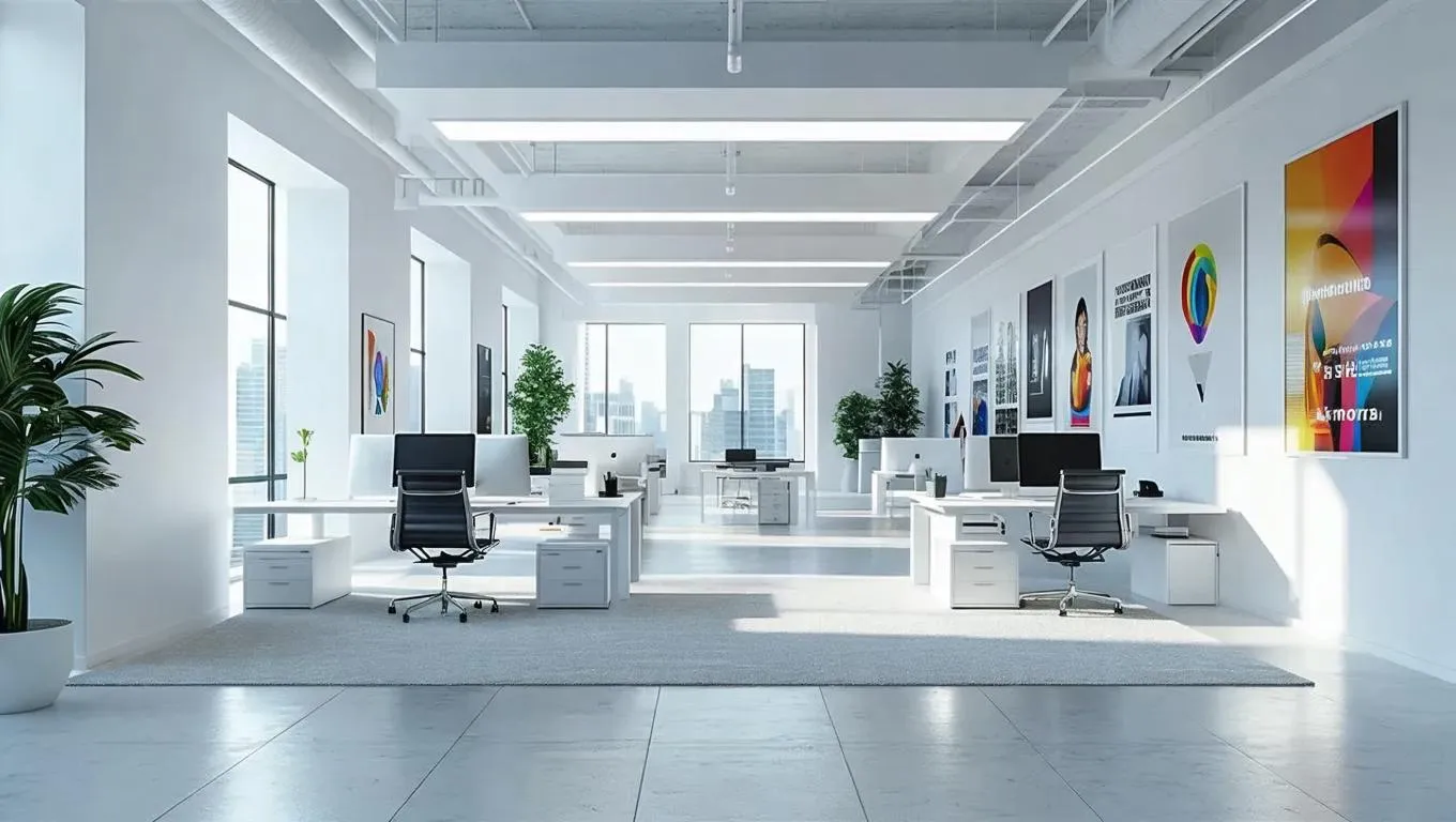 Generate a vibrant Pixar-style 3D office scene with clean white aesthetics and rectangular dimensions using AI. Perfect for animations, ads, or presentations—vivago.ai transforms text prompts into polished, professional visuals with creative AI tools for lifelike textures, lighting, and playful cartoon effects.