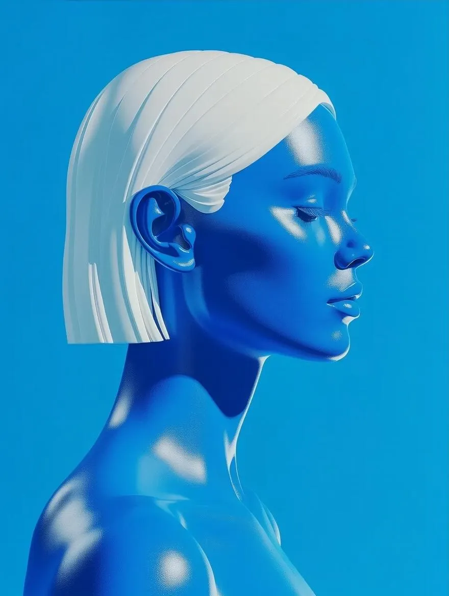 Create striking AI-generated 3D portraits with vivago.ai. Design stylized side profiles featuring white hair, blue skin, and a bold blue monochrome background. Generate modern, minimalist visuals with strong color contrast and maximum impact using our AI image generator and professional creative tools.