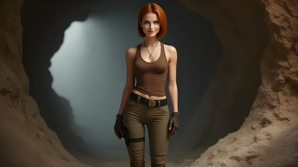 Create hyperrealistic Lara Croft-inspired AI visuals with photorealistic details, film grain textures, and dynamic spelunking scenes. Generate red-haired adventurers in full-body outfits, bob cuts, and daring grins—perfect for cinematic profiles or action-packed storytelling. Elevate AI art with VivaGo's precision tools for lifelike, adventurous character design.