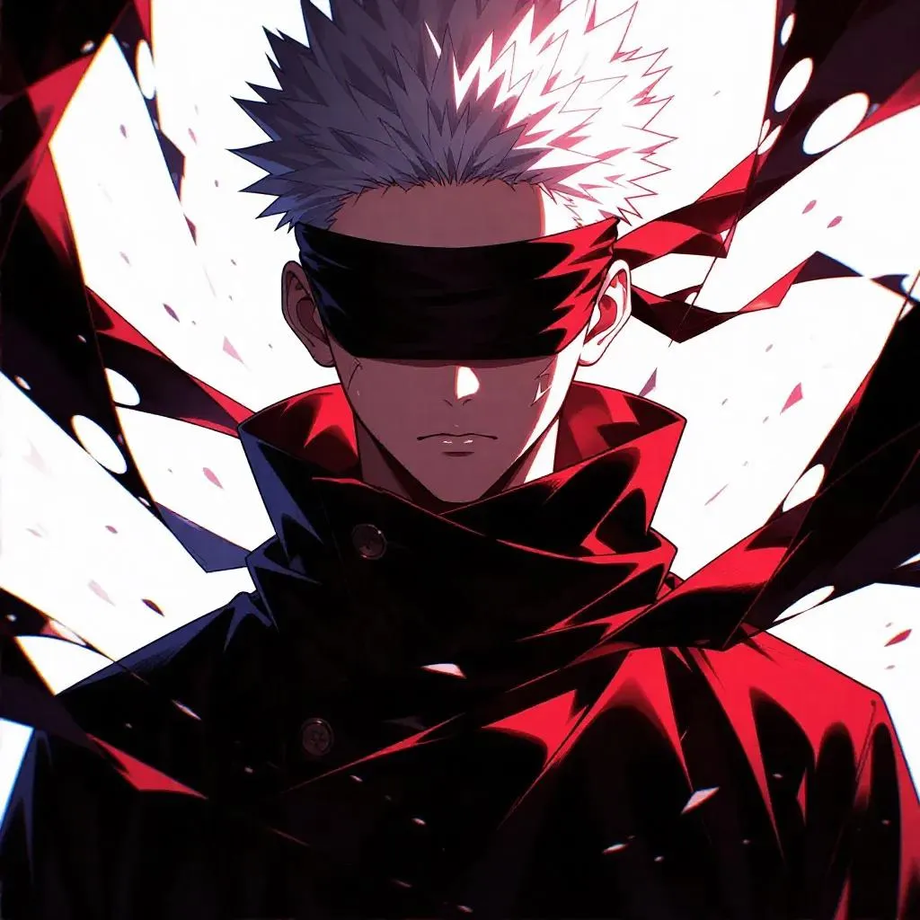 Gojo Satoru from Jujutsu Kaisen, The black cloth covered his eves,bright feeling, realistic usage of light and color,fantastic in the style of japanese contemporary, bold graphic illustrations, social media portraiture, poetic compositions, album covers