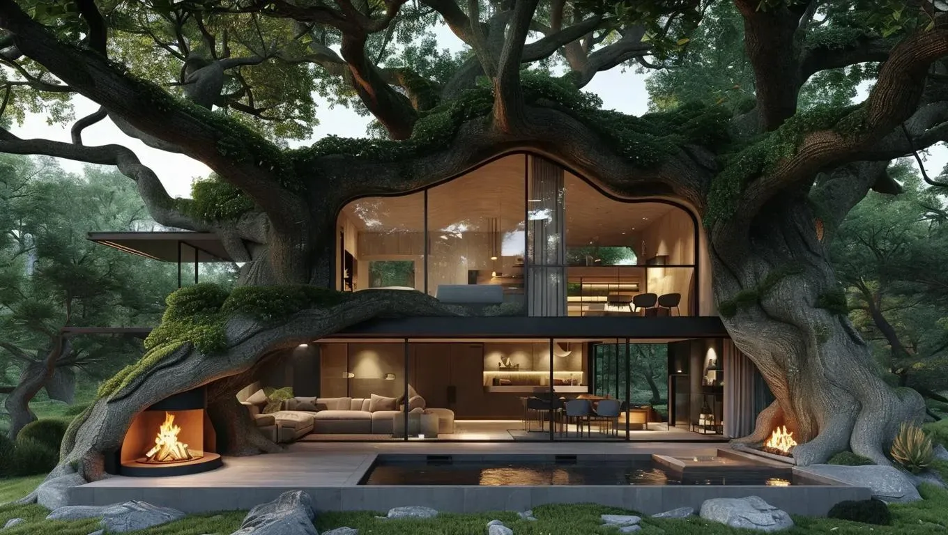 Discover AI-generated imagery of a cozy treehouse studio with a warm fireplace, modern amenities, and enchanting design. Perfect for fantasy-inspired interiors, blending nature and comfort in stunning visuals. Create your dream treehouse retreat effortlessly with Vivago.ai's advanced AI tools.