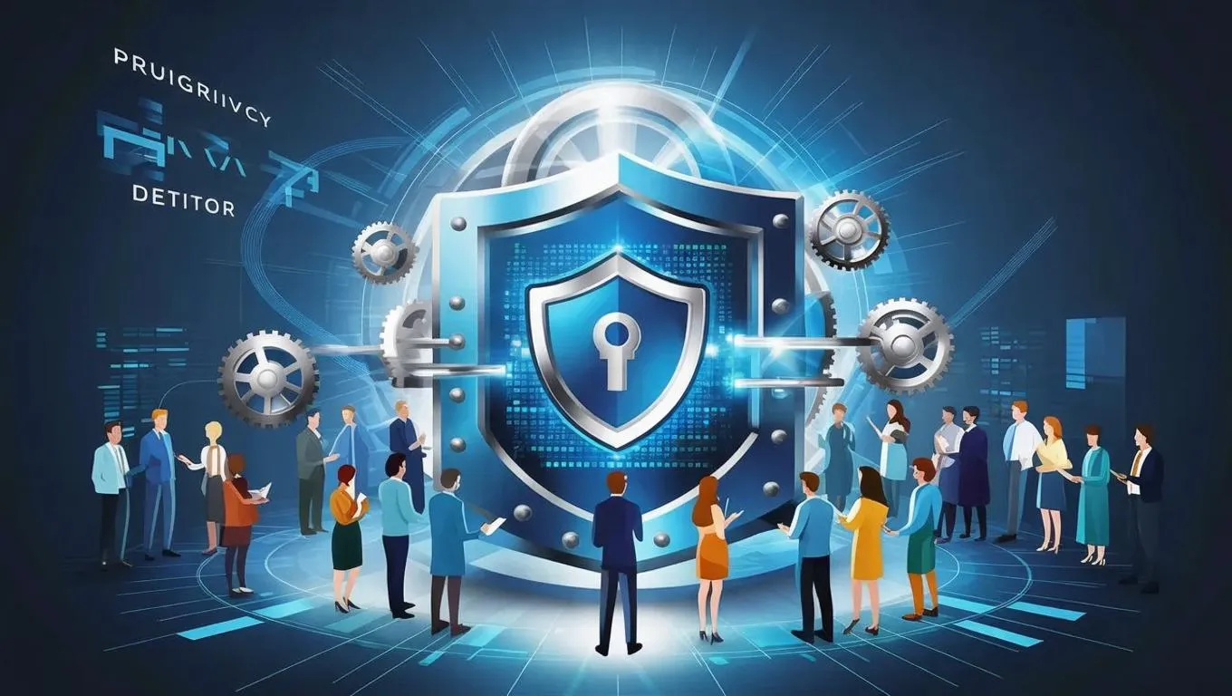 Create a secure privacy policy featured image with AI tools. Integrate shields, locks, and digital data streams in a neutral palette to convey trust. Ideal for data protection pages, enhancing professionalism and user confidence with AI-generated security visuals.