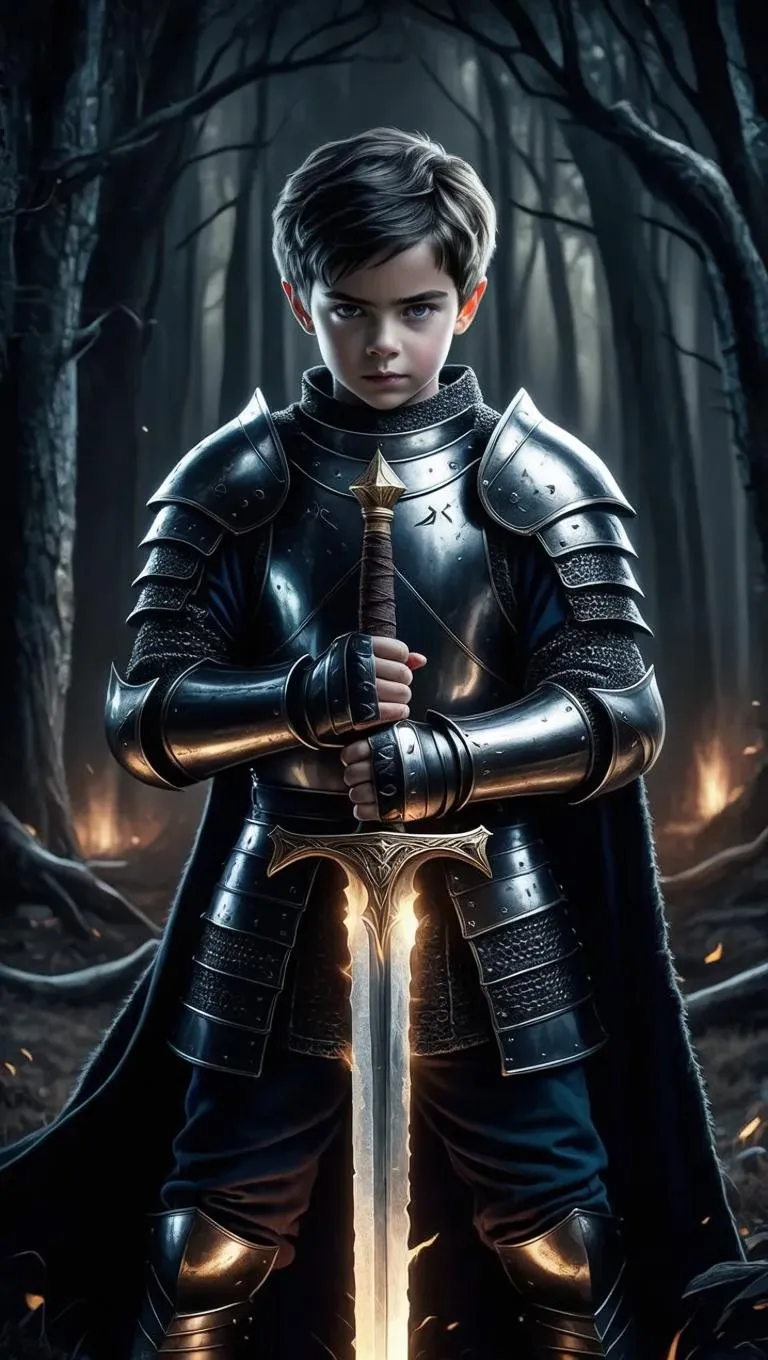 Create a chilling AI-generated image of a terrifying sword-wielding boy. Generate supernatural warrior visuals, horror character designs, and cinematic dark fantasy art with VivaGo.ai's advanced AI effects for spine-tingling, professional-grade results.