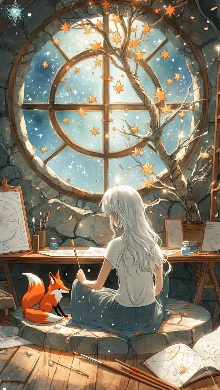 Create serene anime art with an AI-generated girl painting under a skylight in a mystical stone atelier. Soft watercolor tones, star maps, and Ghibli-inspired details blend cinematic charm with tranquil creativity. Explore glowing brushes, celestial motifs, and ethereal settings for AI-driven anime visuals, perfect for storytelling, art enthusiasts, and immersive worldbuilding.