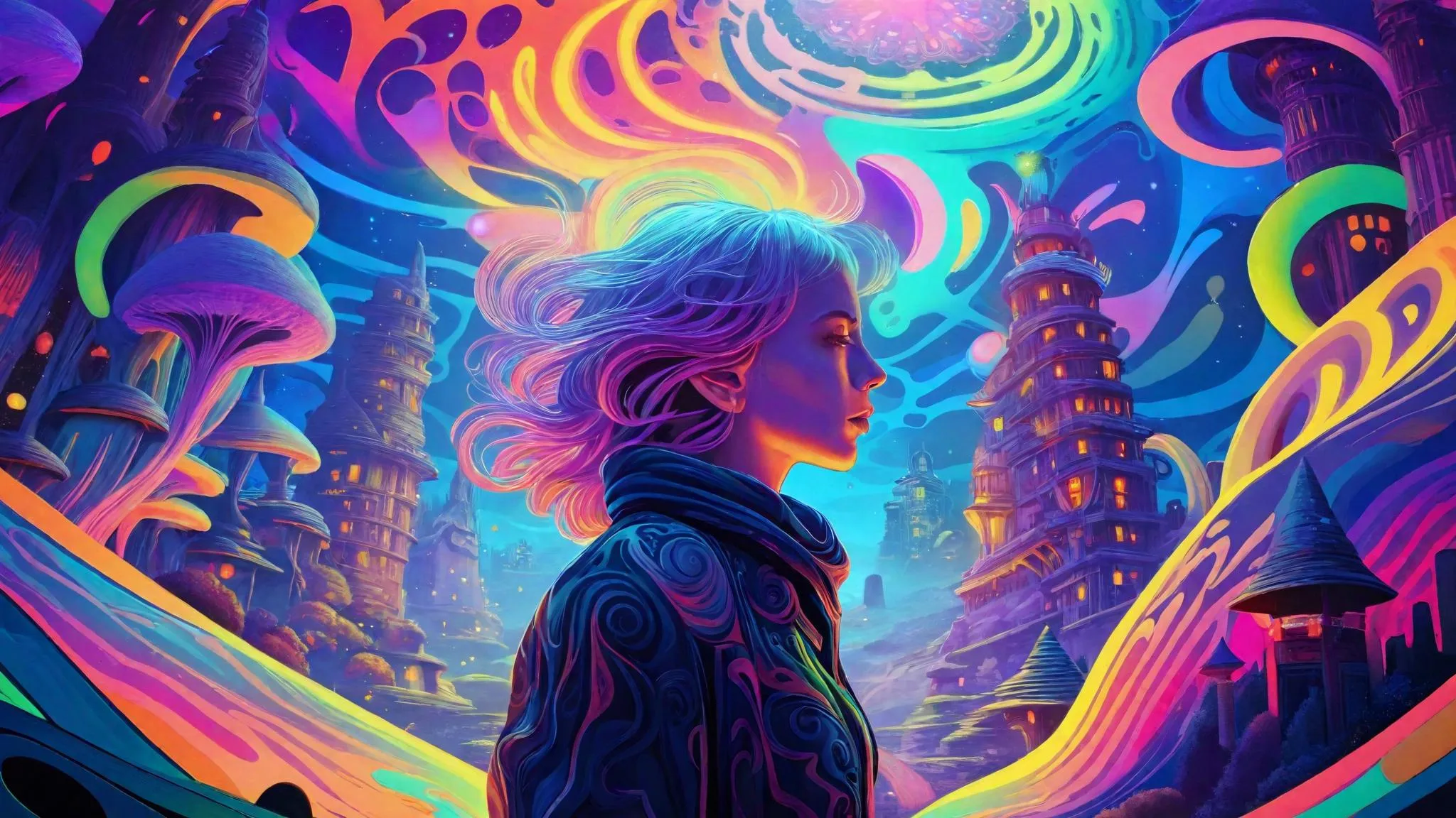 Create vibrant psychedelic art with hyper-detailed, triadic color schemes. Explore dynamic lighting, panoramic visuals, and synesthesia-inspired effects. Generate holographic neon masterpieces using AI-powered tools at vivago.ai for professional-grade, glowing psychedelic creations.