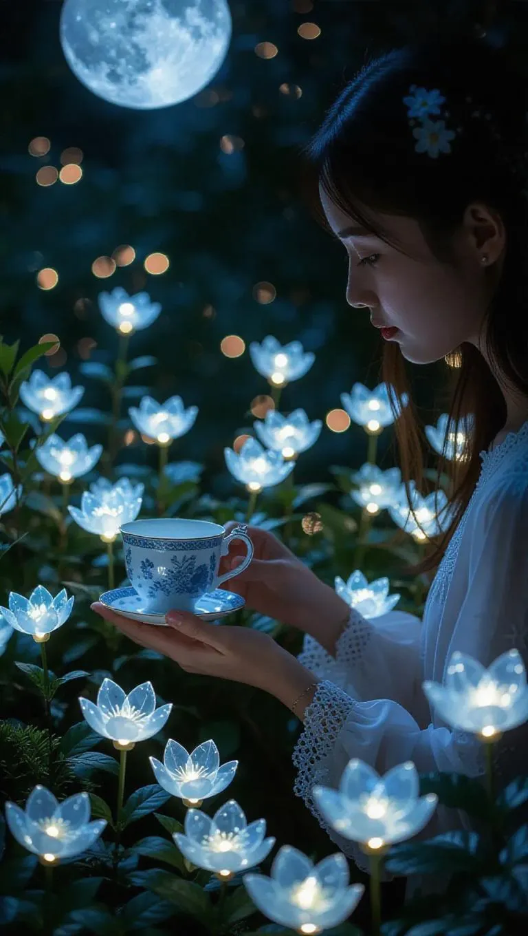 Step into an ethereal AI-generated garden where quartz flowers bloom under moonlight, glowing moss shimmers, and a girl nourishes blooms with starlight. Craft mystical, surreal scenes effortlessly using vivago.ai's advanced AI image tools for professional-grade fantasy visuals.