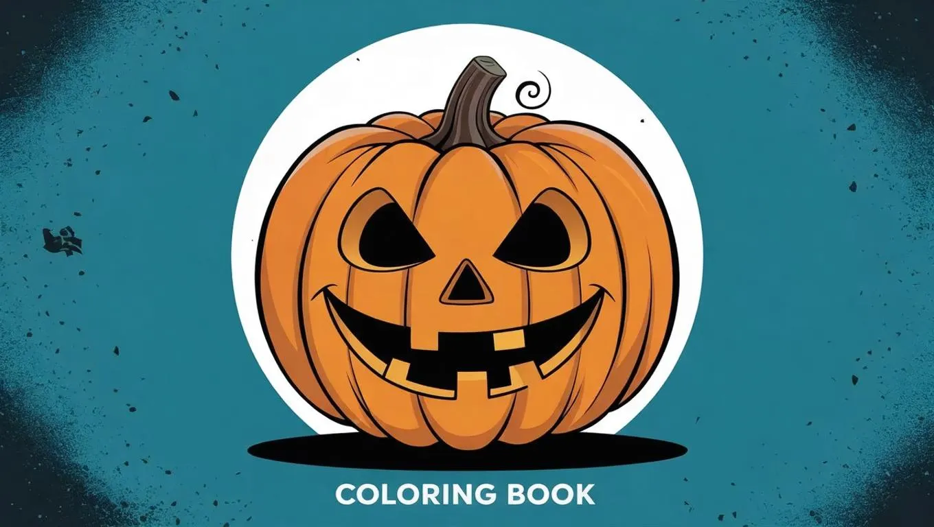 Create a charming Halloween coloring book page with AI. Generate a friendly, smiling pumpkin in vintage comic book style using bold outlines, vibrant ink colors, and a white contour. Perfect for spooky-cute vector illustrations that are easy to color and ideal for kids' Halloween activities.
