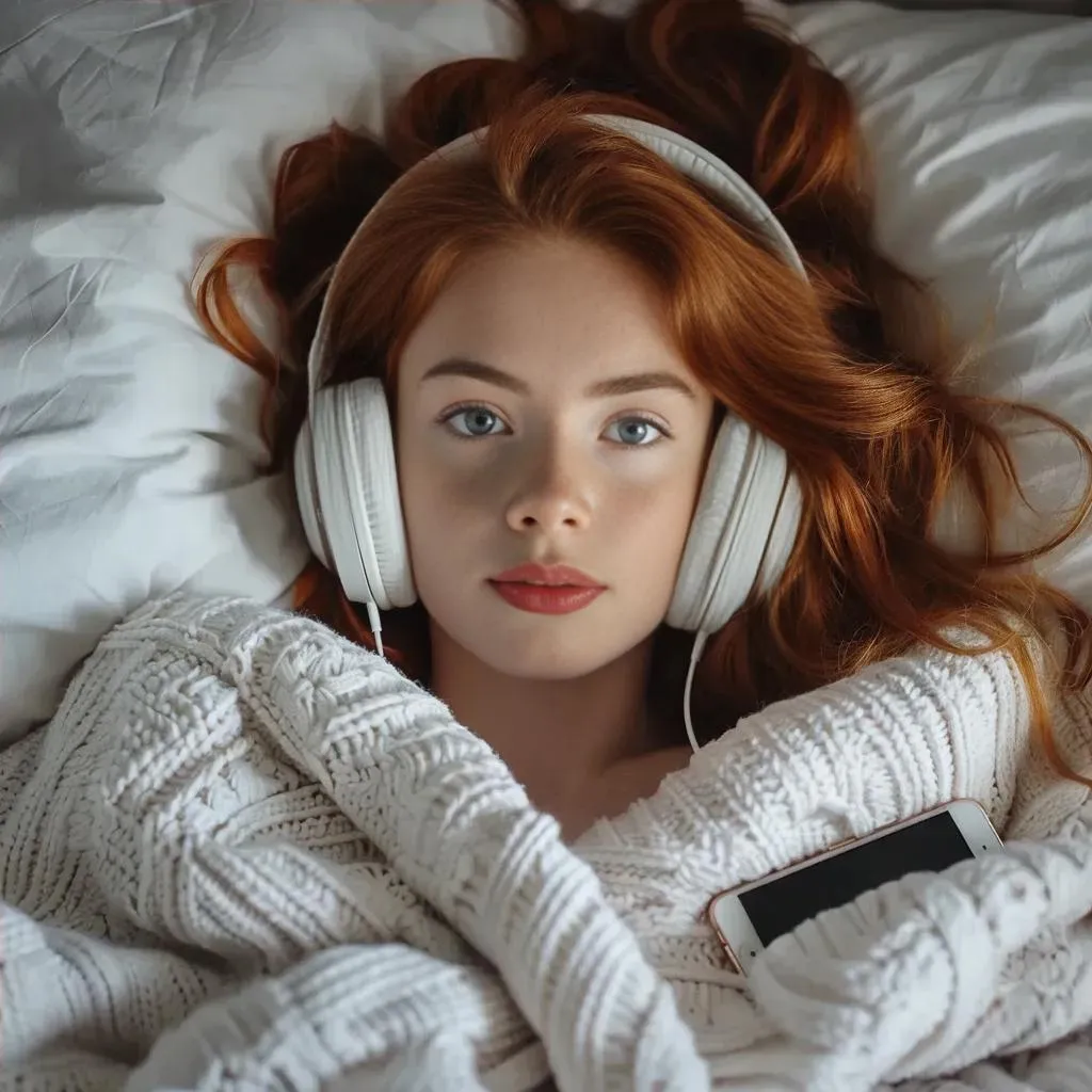 Create stunning AI-generated visuals of a beautiful redhead girl with plump lips, cozy in bed under a soft blanket, holding headphones and an iPhone. Vivago.ai’s advanced AI transforms text prompts into vibrant, lifelike images. Perfect for digital art, social media, and creative projects—effortlessly craft professional-grade visuals.
