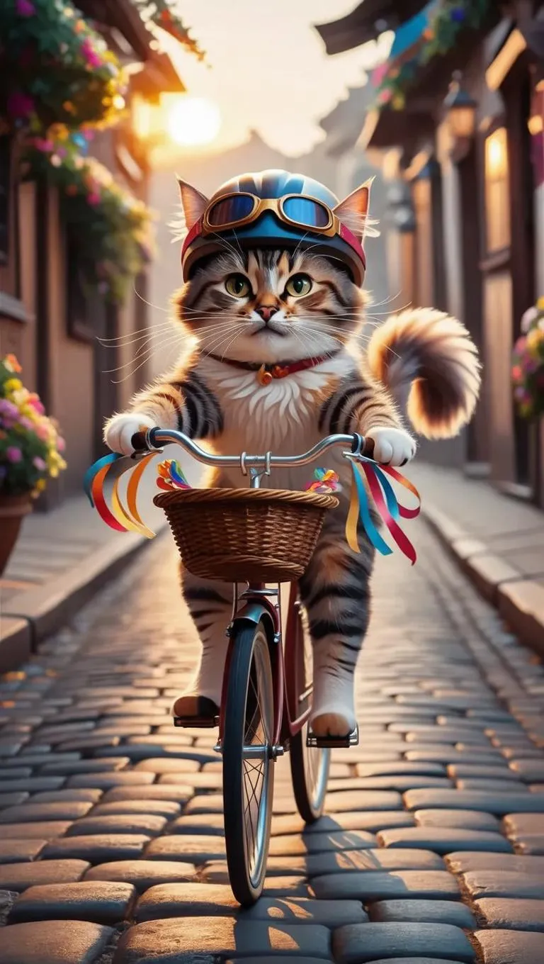 Generate a whimsical AI image of a cat riding a bike with vivago.ai. Transform text prompts into dynamic visuals using AI-powered creativity. Customize details, apply artistic effects, and download high-quality results instantly. Perfect for quirky content, digital art, or social media posts. Explore AI tools for seamless image generation.