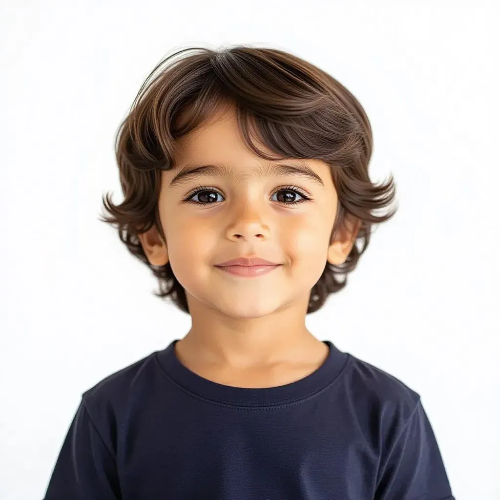 Create lifelike AI-generated images of a Brazilian child with light brown skin and brown hair using Vivago.ai. Transform text prompts into professional visuals with crisp white backgrounds. Explore AI creative tools for realistic, customizable portraits of toddlers and kids, perfect for digital art or photography projects.