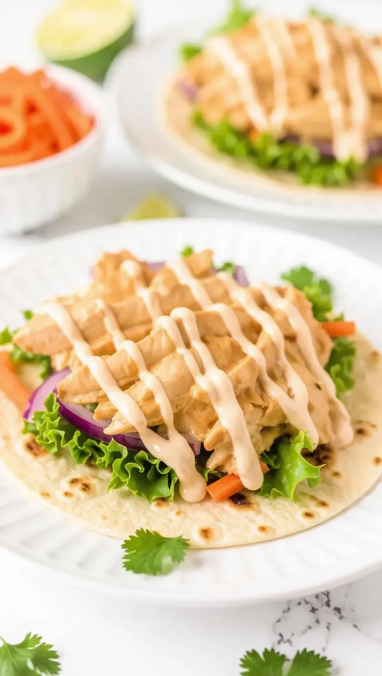 Create a zesty Thai Chicken Wrap with grilled chicken breast, crisp lettuce, carrots, cilantro, and crunchy Asian noodles, blended with spicy Thai chili sauce and mayo. Wrapped in a warm flour tortilla for a vibrant, protein-packed meal. Perfect for quick lunches or flavorful dinners. Explore AI-enhanced recipes for professional culinary creativity.