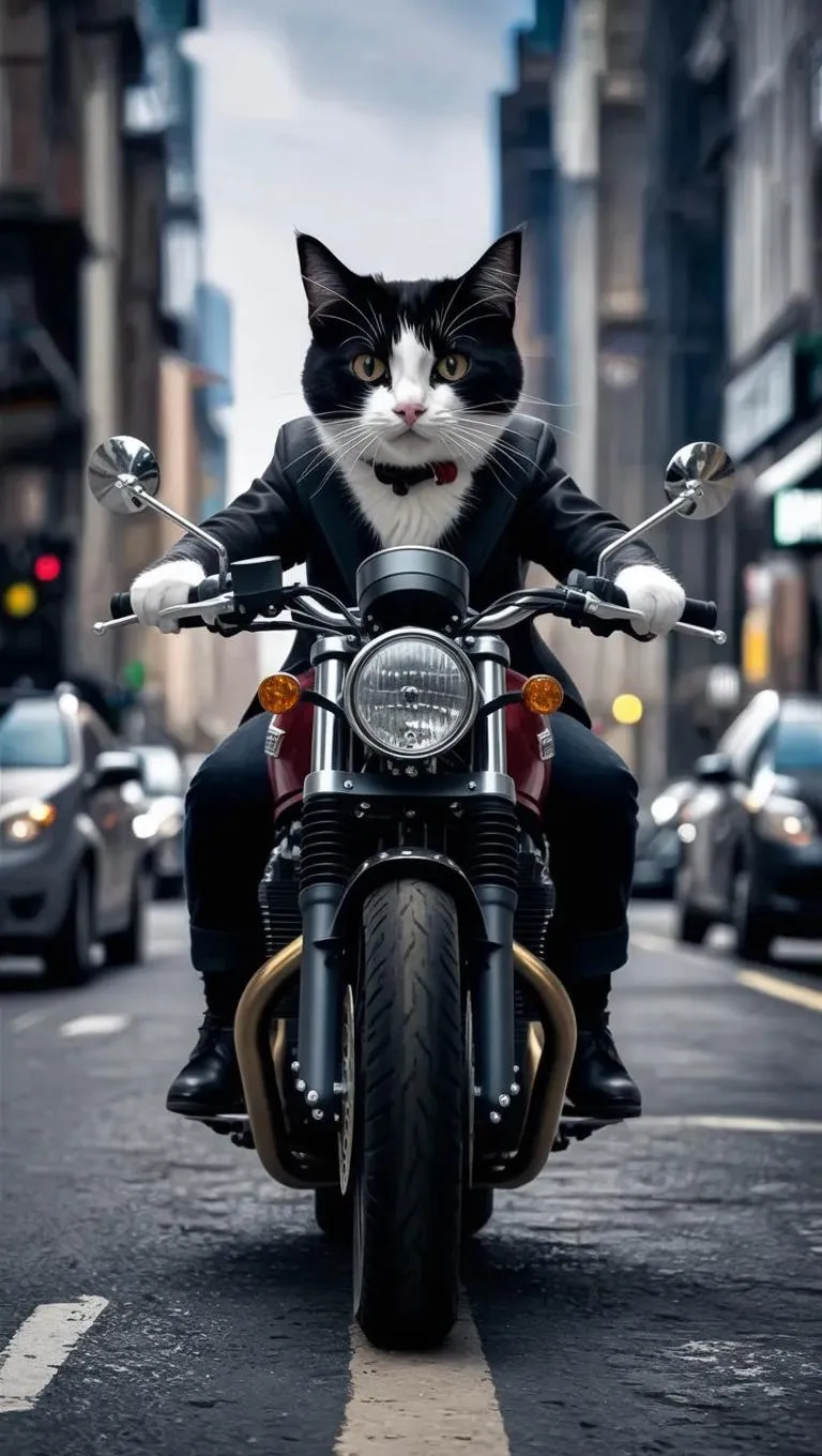 Transform your vision into hyperrealistic art with vivago.ai! Generate a lifelike black-and-white cat riding a motorcycle using AI-powered tools. Perfect for realistic image creation, detailed AI effects, and professional visual storytelling. Elevate your projects with seamless text-to-image magic and hyperrealistic precision. Explore limitless creativity today.