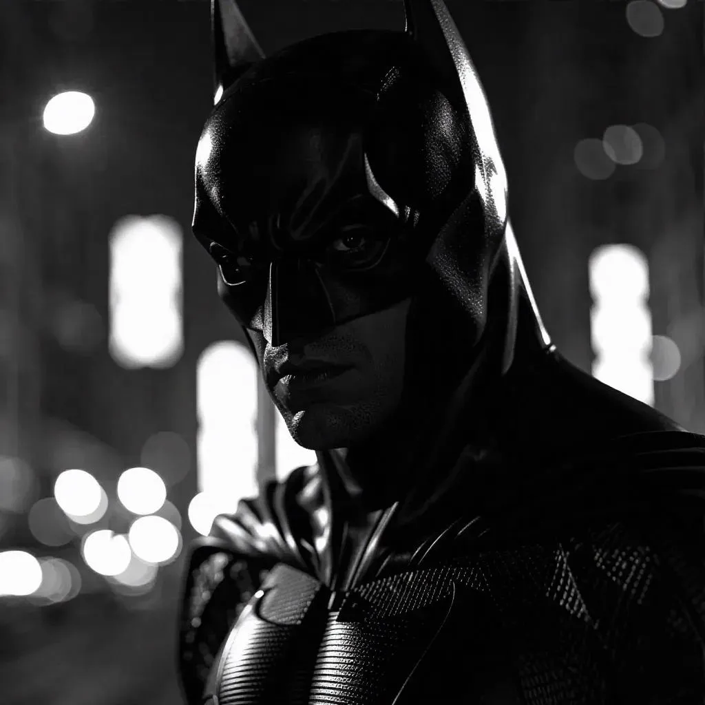Explore Batman Vengeance through monochromatic photography, blending digital manipulation and high-contrast post-processing for a modern aesthetic. Dive into a black and grayscale palette, creating dramatic visuals with AI tools. Perfect for contemporary dark themes and striking artistic expression.