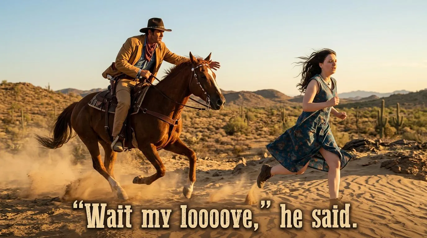 Brisco County Jr trying to cach the girl with the blue in the wild desert. Wait my loooove he said