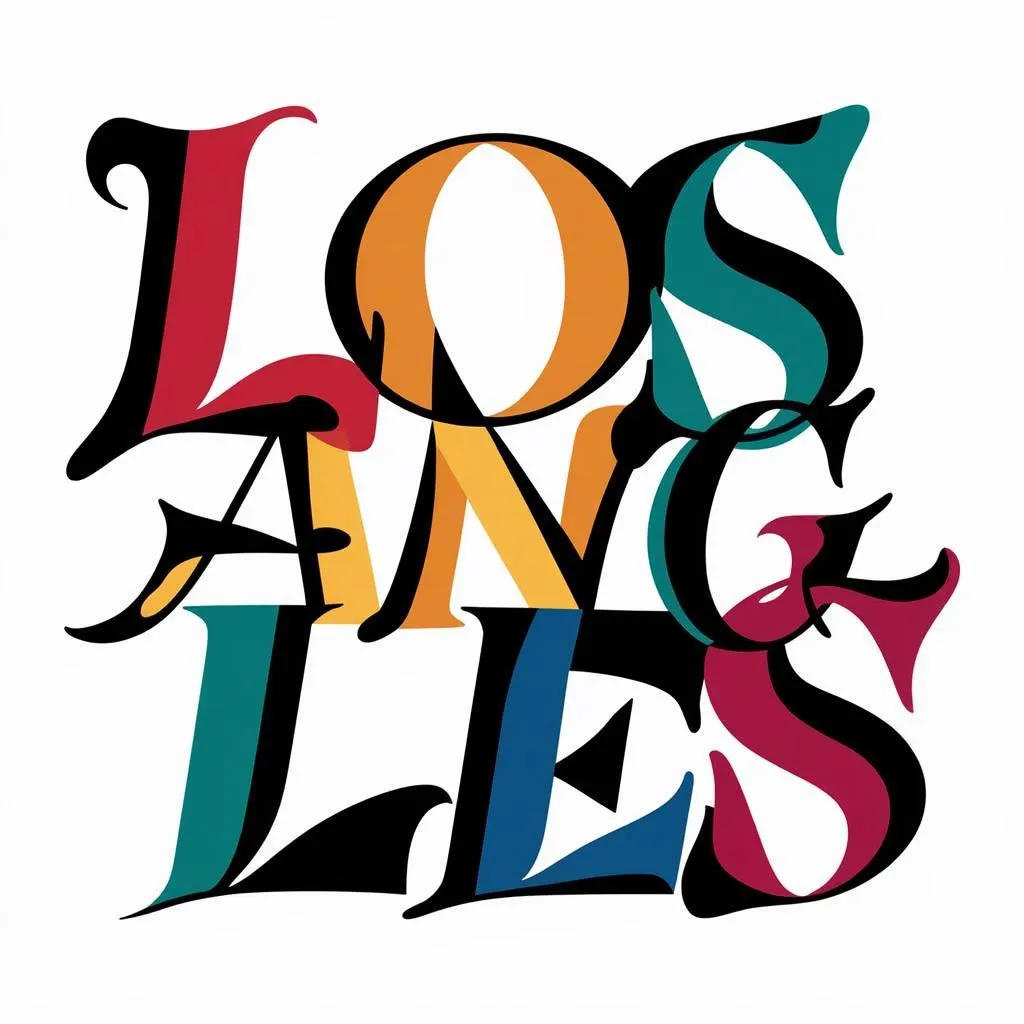Discover a vibrant Los Angeles logo design with abstract art elements, multicolor lettering, and vector-style graphics. Ideal for eye-catching t-shirt prints or branding projects on crisp white backgrounds. Create custom AI-generated visuals for merchandise, apparel, and urban-themed designs at VivaGo.ai.