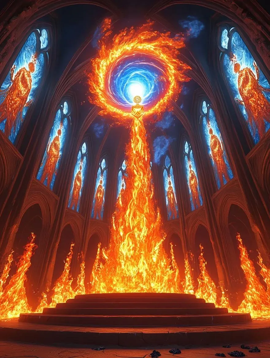 Ignite imagination with AI-generated surreal visuals: a living flame cathedral rising from magma seas, liquid wildfire stained glass, sentient fire-spirits, and lava-fall organs. Ultra-wide fisheye lens captures celestial plasma deities, fractal halos, and antimatter shadows reshaping reality. Perfect for #Surrealism cinema scenes blending extreme closeups with cosmic-scale grandeur. Explore hyper-detained AI artistry for vivid, otherworldly storytelling.