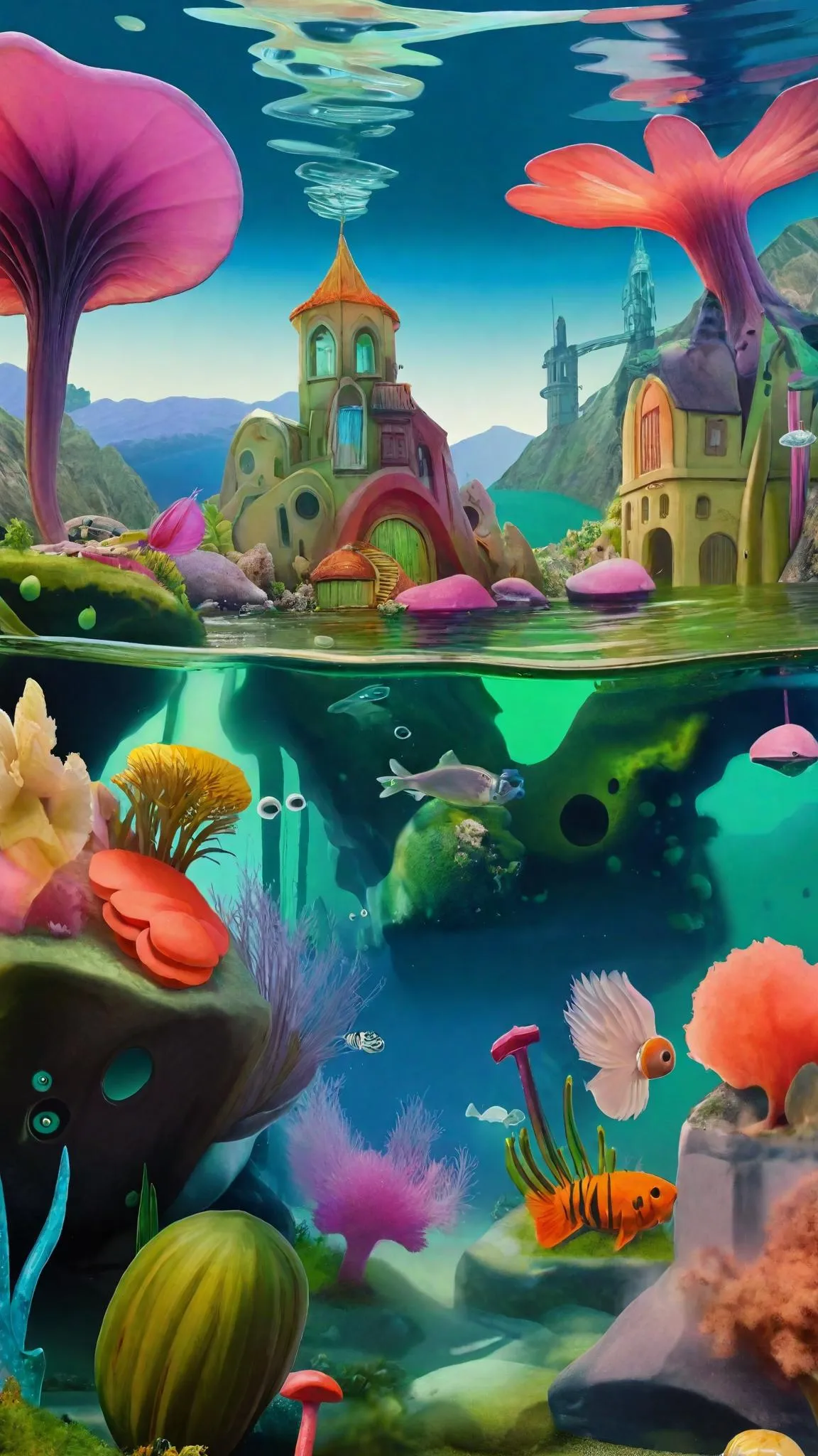 Explore a hyper-realistic AI-generated Cretaceous underwater world with submerged fantasy cityscapes, crystal-clear turquoise waters, and whimsical pink jelly creatures. Vivago.ai crafts vivid scenes of coral reefs, ancient rock formations, and ethereal marine life, transforming prompts into professional-grade visuals for immersive aquatic storytelling. Unleash creativity with AI-powered underwater scene design.