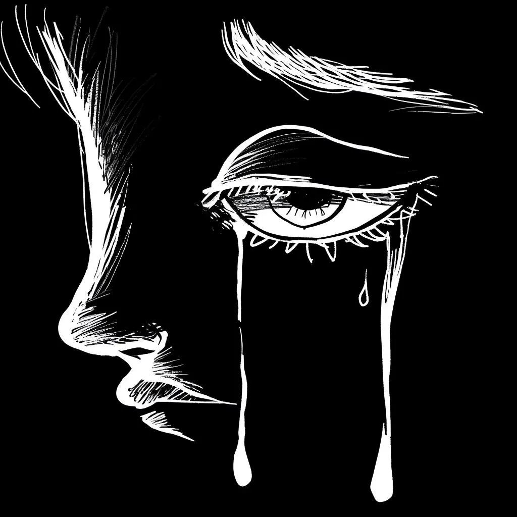 Create AI-generated childlike doodle art with a crying face, tears from the right eye, and white sketches on a black background. Transform emotional prompts into professional-grade visuals using Vivago.ai's AI image tools for striking, minimalist designs.