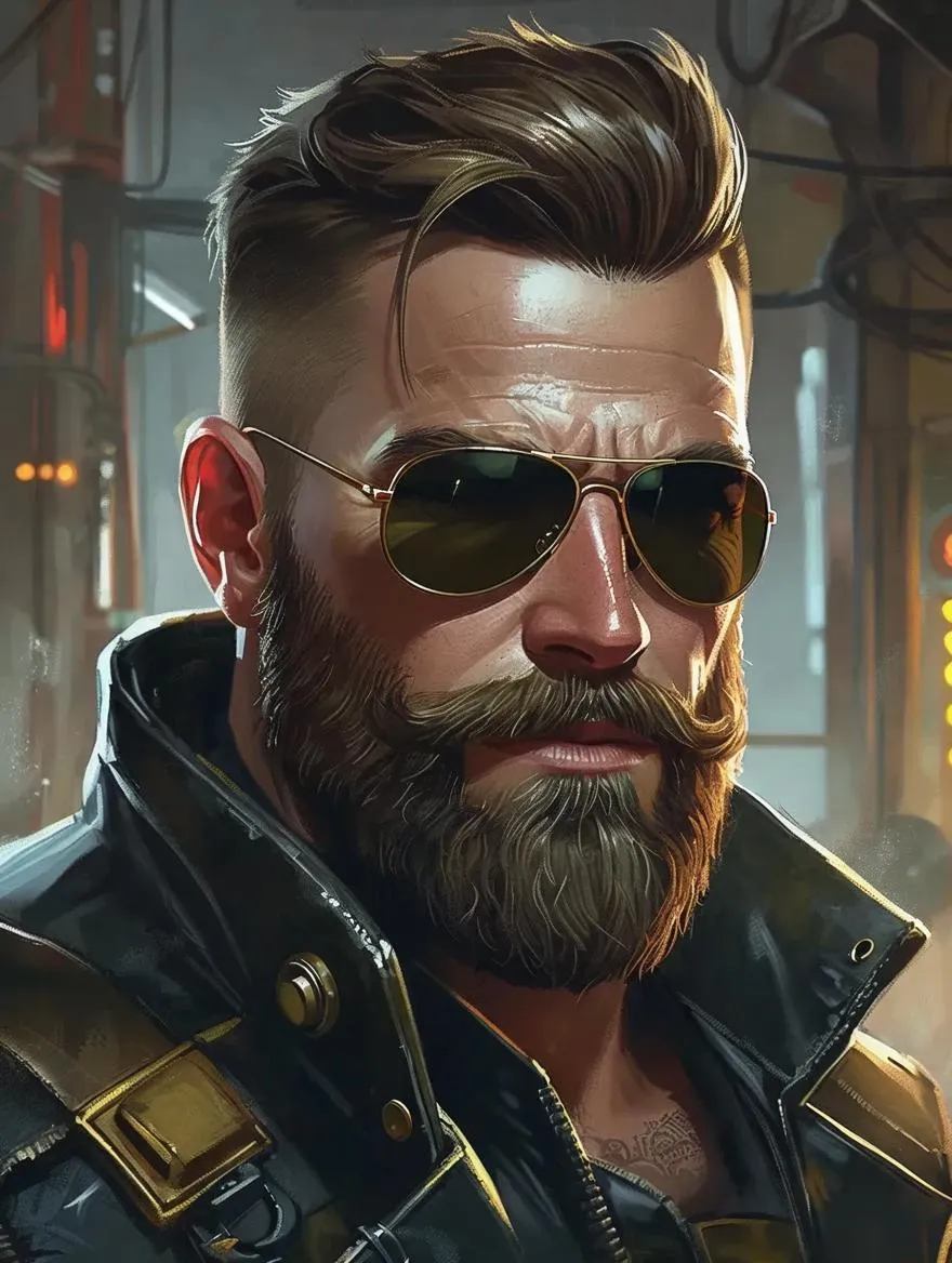 Generate Brotherhood of Steel veteran Spectre in Fallout New Vegas style using AI. Create rugged post-apocalyptic character art with short beard, tactical sunglasses, and faction armor. Perfect for Fallout fans seeking AI-generated gaming avatars, Brotherhood of Steel visuals, or custom text-to-image retro-futuristic designs.