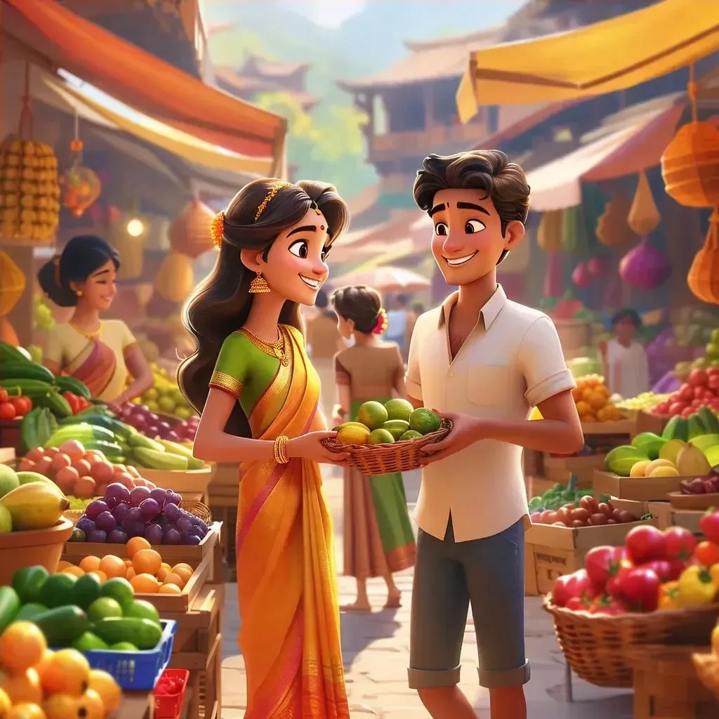 Create vibrant AI-generated animations of a young couple shopping in a bustling market. Transform text prompts into lively scenes with vivago.ai's advanced tools for professional storytelling, dynamic videos, and charming visual effects. Perfect for engaging narratives or ads.