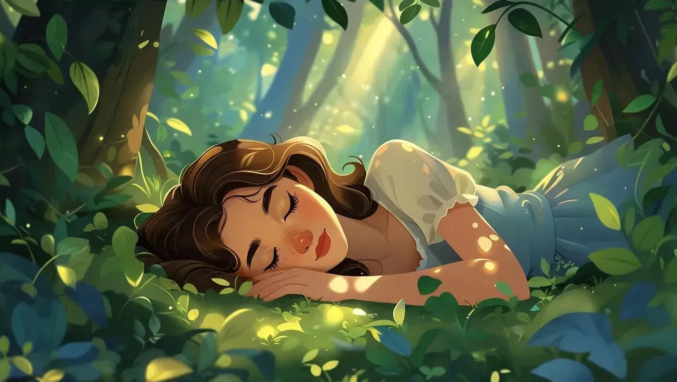 Generate a dreamy 2D retro animation scene of a sleeping female character in a mystical forest. Vivago.ai transforms text prompts into vintage-style visuals with enchanting details, ideal for animation projects, storytelling, and artistic creations. Elevate your retro-themed designs with AI-powered precision and nostalgic charm.