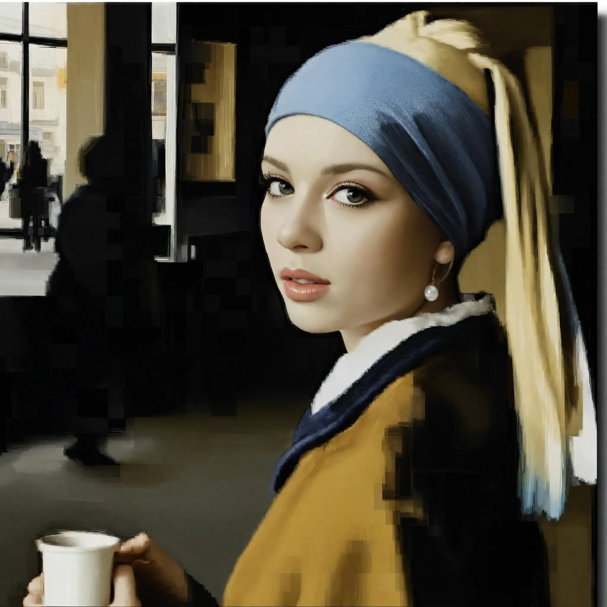 Generate vibrant AI visuals of a stylish blonde girl holding a coffee cup in a dynamic shopping center scene. Transform text prompts into lifelike images with Vivago.ai's advanced AI tools for photorealistic details, trendy fashion elements, and atmospheric lighting effects. Create stunning visuals effortlessly for social media, ads, or creative projects.