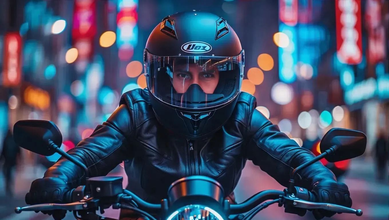 Generate cyberpunk-inspired AI art of a mysterious biker racing through neon-lit cityscapes. Explore urban nightlife themes with dynamic visuals—black helmet obscuring identity, vibrant neon reflections, and futuristic atmospheres. Create high-quality, anonymous rider imagery using AI tools for edgy, immersive digital artwork.
