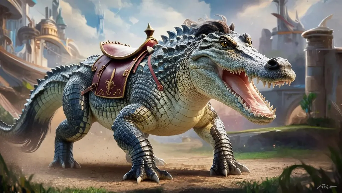 Craft mythical AI art with the Crocodile Steed: a majestic horse-crocodile hybrid featuring scaly armor, a powerful crocodilian snout, and intelligent eyes. Generate striking fantasy visuals blending equine grace and reptilian strength using Vivago.ai's AI tools for dynamic, professional-grade creature designs. Perfect for epic storytelling, concept art, or immersive world-building projects.
