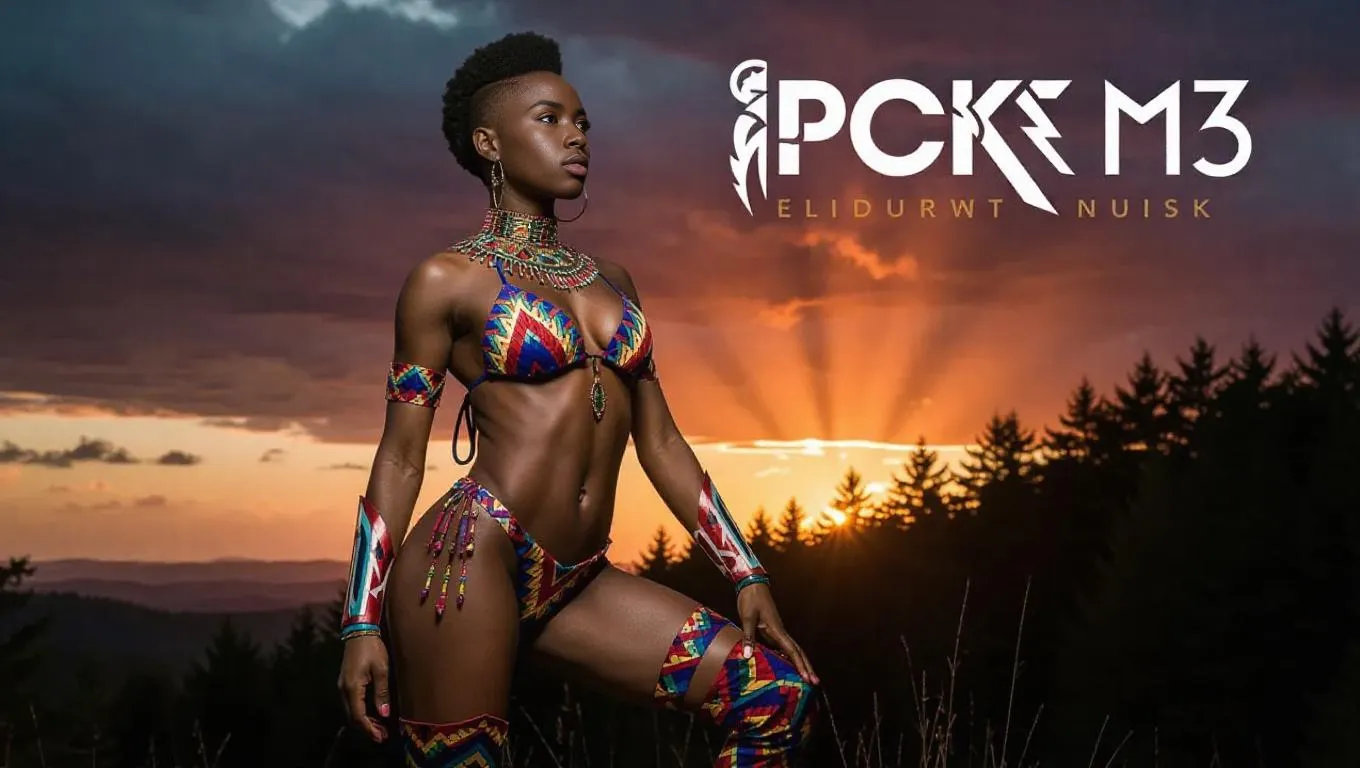 Vivago.ai's AI-generated art showcases a fierce young Black warrior in vibrant, intricate attire, standing defiantly on a hill under foreboding skies. Inspired by Beksiński's dramatic lighting, Loish's bold hues, and Stålenhag's storytelling, this digital illustration offers a dark, moody aesthetic perfect for heroic fantasy narratives and professional-grade visual content creation.