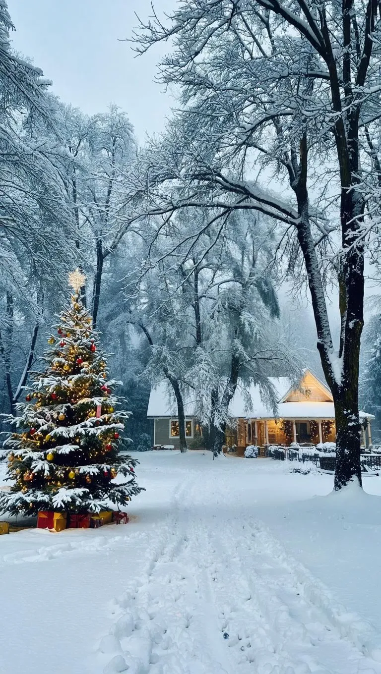 Generate a magical Snowy Christmas Eve scene with vivago.ai's AI image tools. Create festive, hyper-realistic winter wonderlands, twinkling lights, and cozy holiday moments from text prompts. Perfect for holiday cards, social media, or festive visuals. Customize snow effects, lighting, and details for professional Christmas-themed content.