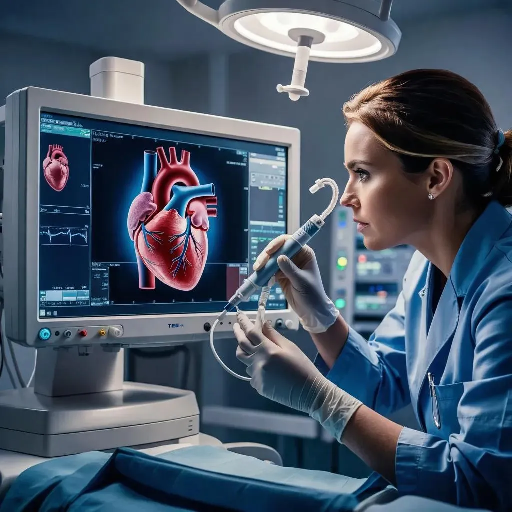 Explore transesophageal echocardiography examination with AI-generated visuals. Learn step-by-step procedure basics, probe placement, and cardiac imaging for beginners. Enhance medical training with realistic AI simulations, detailed anatomical views, and real-time guidance. Perfect for students and professionals mastering non-invasive cardiac diagnostics.