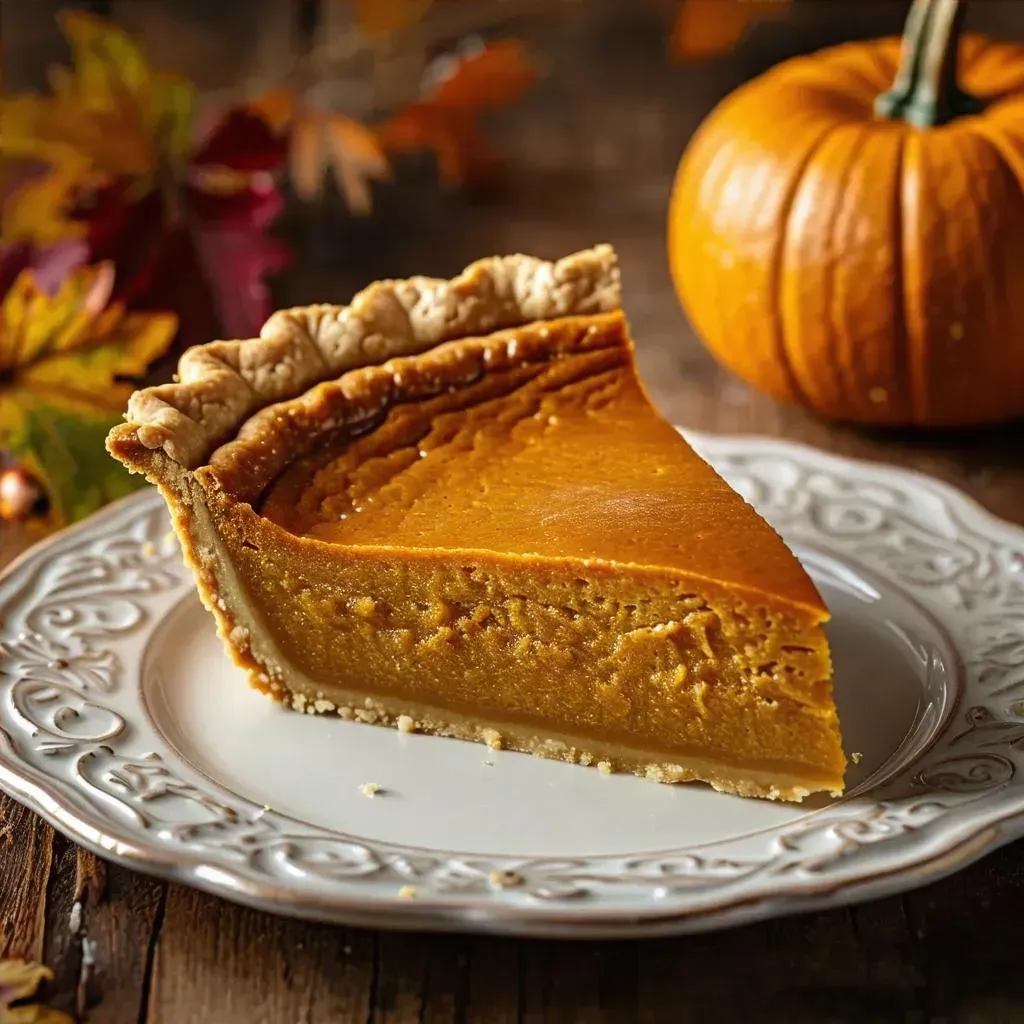 Capture the essence of autumn with this ultra-detailed, HDR photo of a mouthwatering pumpkin pie on an ornate plate. Shot on Nikon Z FX with soft focus, warm diffused lighting enhances golden hues, creating a cozy, inviting aesthetic. Perfect for foodies and content creators seeking vivid, professional-grade culinary visuals.