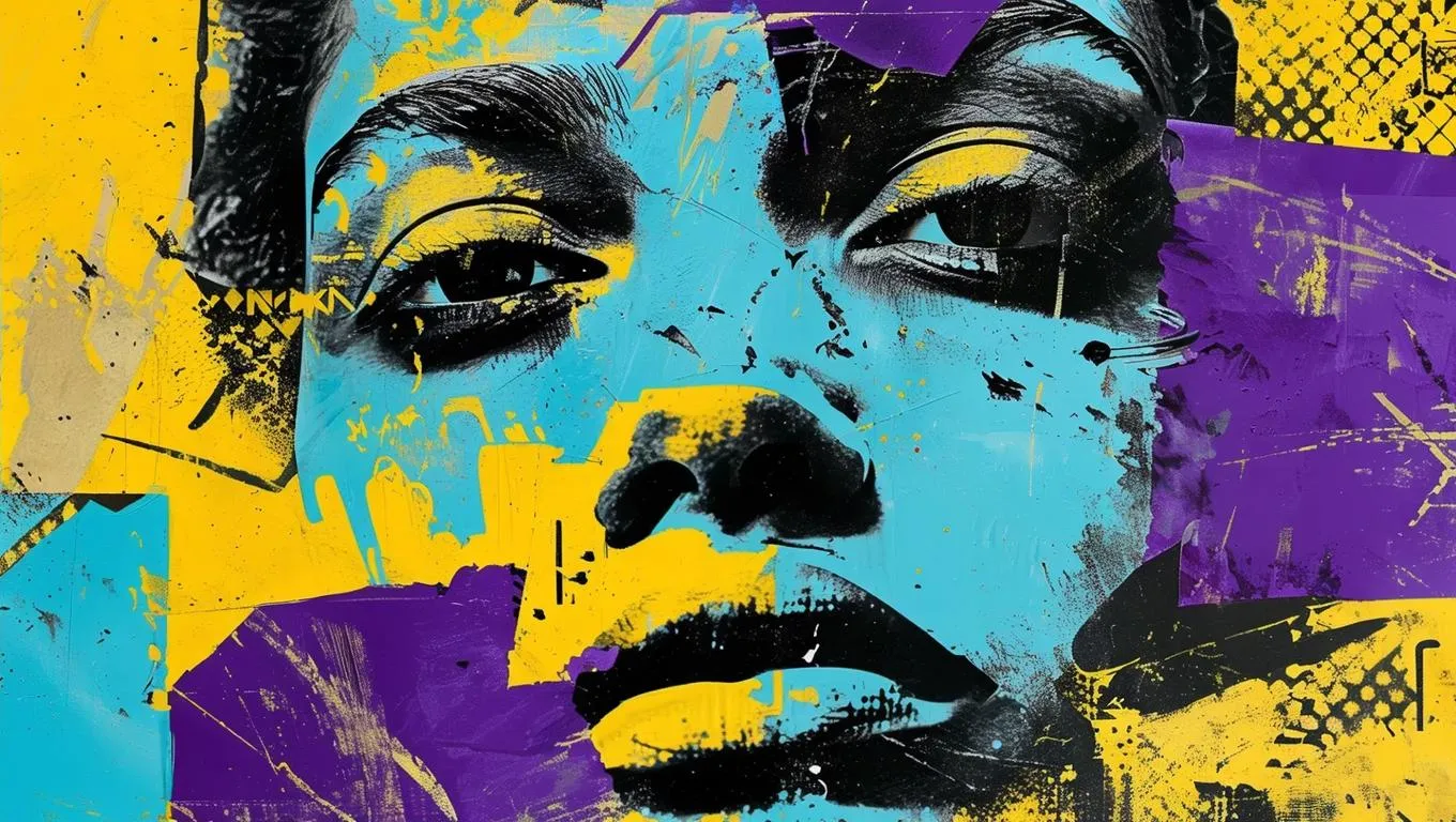 Create striking graffiti-inspired portraits with AI effects on Vivago.ai. Transform text prompts into vibrant purple, yellow, and cyan abstract collages featuring grunge textures, mixed patterns, and serene close-up faces. Elevate mundane materials into edgy, surreal art using AI-powered tools for bold, professional-grade visual storytelling.