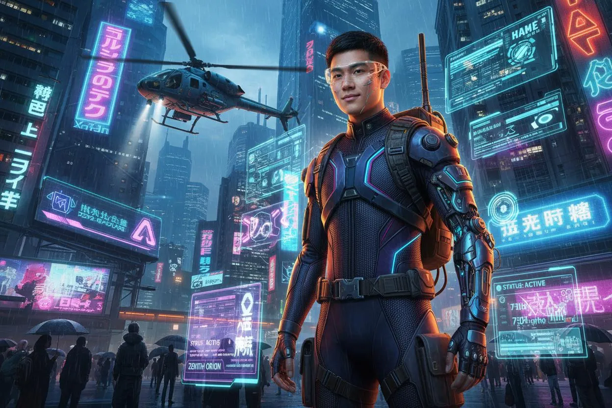Transform photos into cyberpunk holographic portraits with VivaGO AI. Create futuristic avatars with accurate facial likeness, cybernetic enhancements, and holographic effects against diverse neon cityscapes. Ensure cinematic lighting, full-body renders, and error-free images every time. Personalize your high-tech dossier imagery. (58 words)