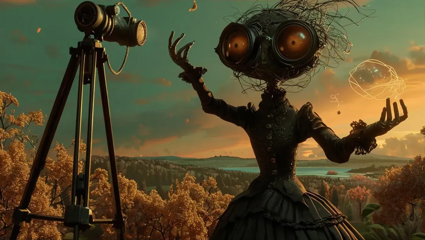 Generate AI-powered noirscape visuals with aurorize fashion elements using vivago.ai. Transform synapsyche musician concepts into Victorian claymation scenes featuring light brown eyes and dynamic tripod interactions. Ideal for creating whimsical, avant-garde AI art blending retro aesthetics with surreal AI image generation tools.