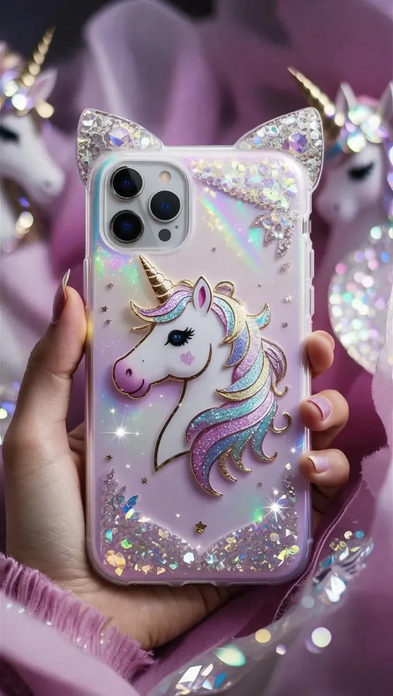 Create a dazzling unicorn-themed phone case with sparkling glitter effects using Vivago.ai. Transform text prompts into magical, vibrant designs for personalized accessories. Explore AI tools to generate fantasy-inspired visuals, enhance details, and ensure professional-grade results. Perfect for crafting eye-catching, viral social media content or unique merchandise with ethereal charm.