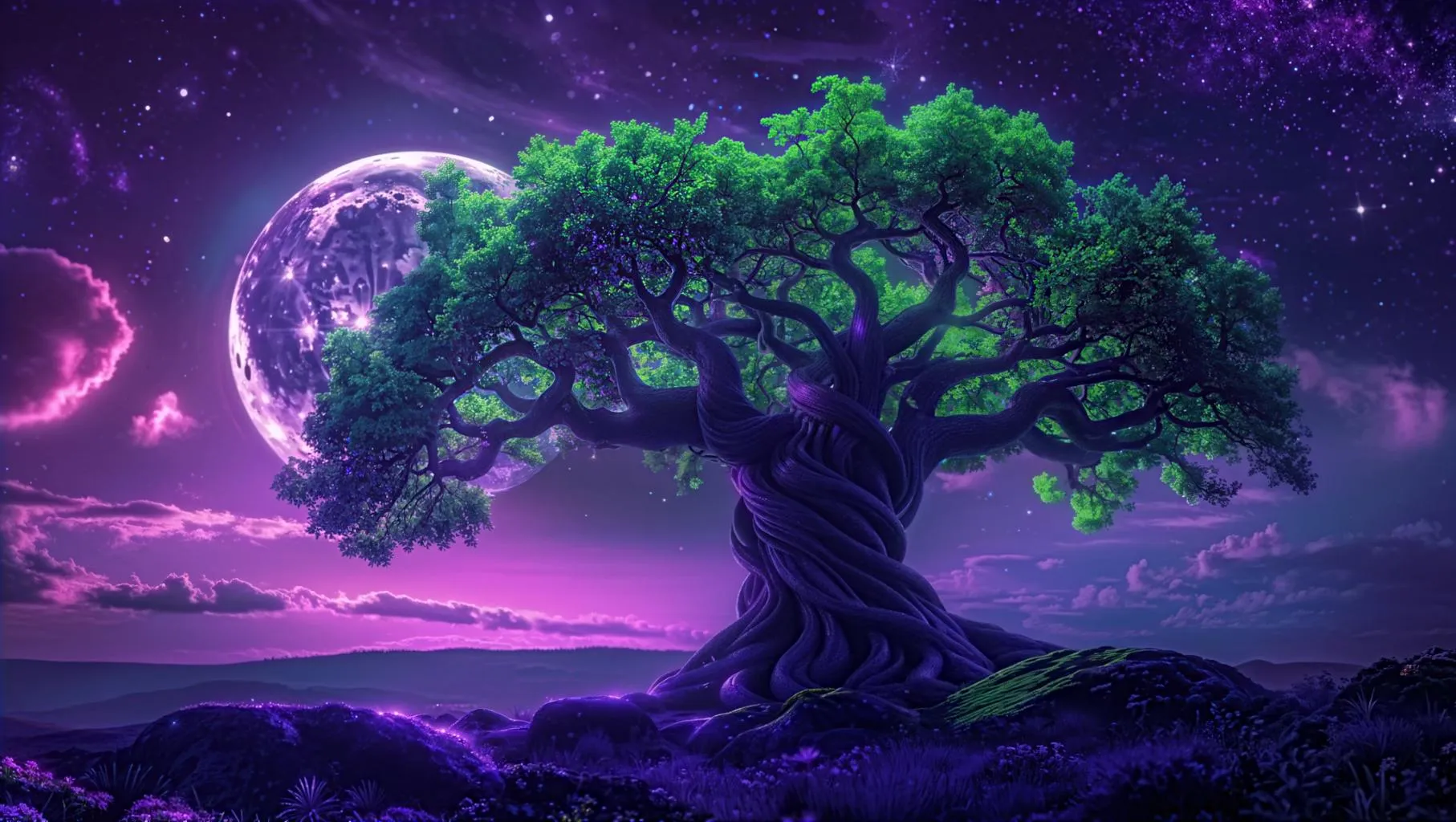 Transform text into stunning visuals with AI-generated cosmic Yggdrasil art. Capture mystical sci-fi photography with neon-lit branches, swirling galactic patterns, and ethereal violet-green hues under a starry night sky. Elevate creativity using vivago.ai's tools for surreal, detailed landscapes with deep shadows, mystical auras, and professional-grade AI effects.