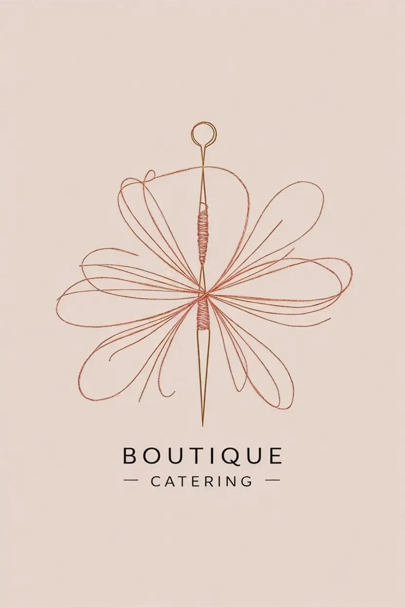 Craft a sophisticated, minimalist boutique logo with warm pastel tones and delicate needle-and-thread line art. Designed for audiences 35+, this elegant, creative emblem blends timeless appeal with modern simplicity for a visually captivating brand identity.