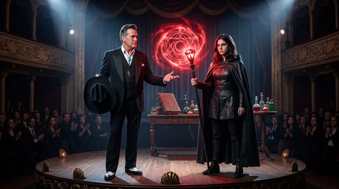 Bruce and witch girl in a magic show.