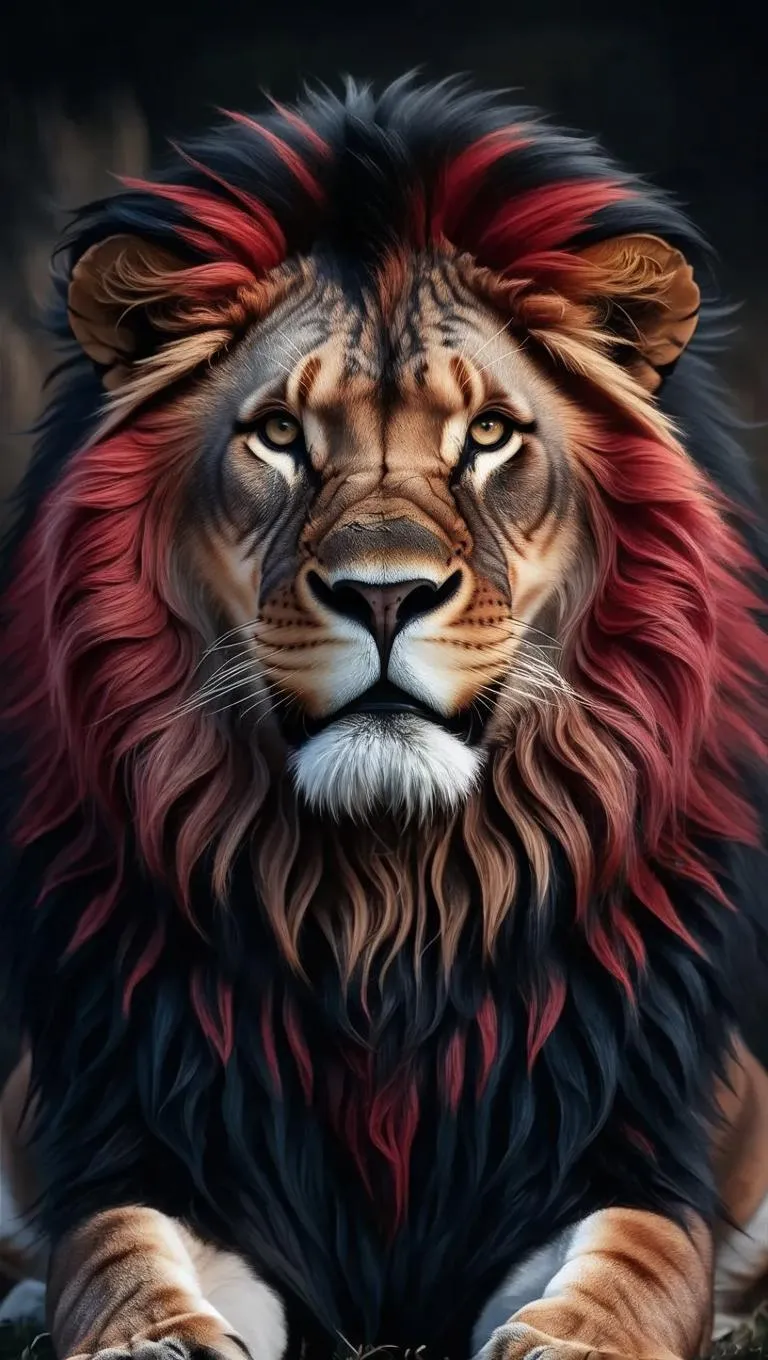 Generate stunning AI-powered images of a majestic lion with vivid black and red striped fur, confident pose, and direct gaze. Ideal for realistic animal photography, digital art projects, and creative content. Explore professional-grade AI effects for lifelike wildlife visuals that captivate audiences.