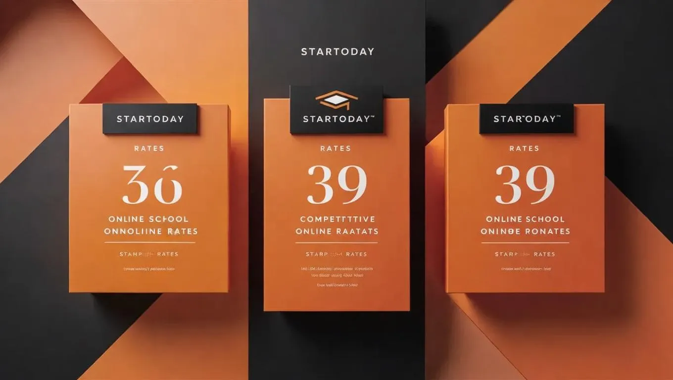 Explore StarToday's competitive online school rates with bold orange-black designs, minimalist layouts, and clean typography. Trustworthy, modern webpage showcases affordable plans, ideal for students seeking reliable online education. Branded visuals and clear pricing enhance user experience, driving enrollment for quality virtual learning.