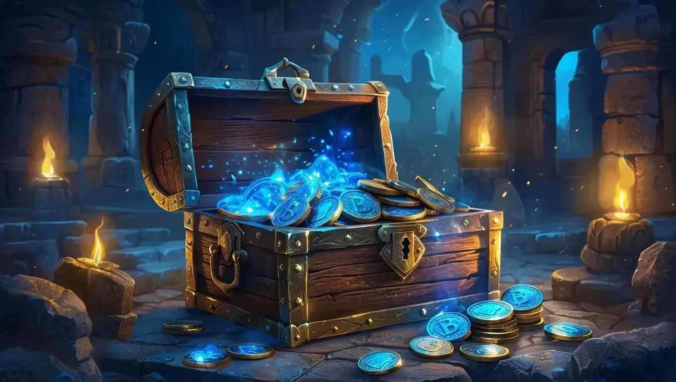 Generate a vivid AI image of a blue cloth bag bursting with shimmering coins. Ideal for fantasy themes, treasure visuals, or financial content. Create professional-grade graphics with vivago.ai's AI tools, blending text prompts and effects for striking digital art or storytelling projects.