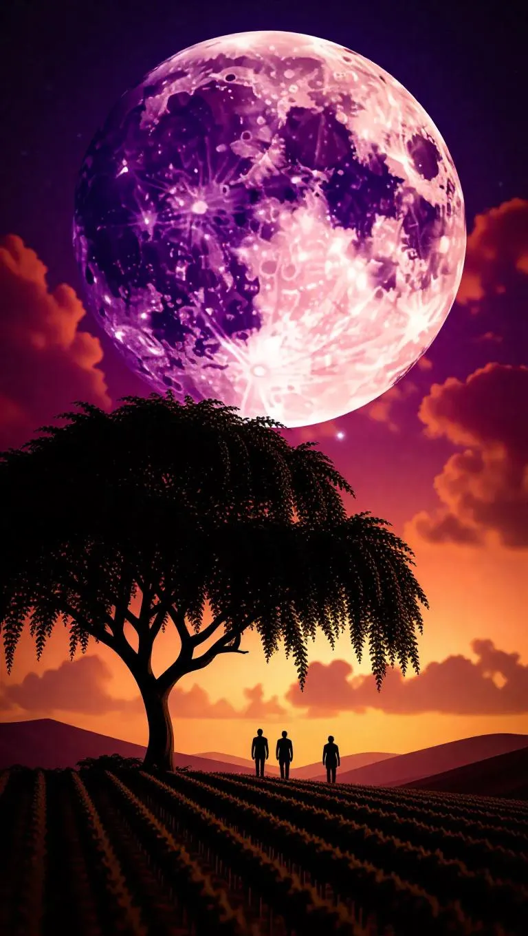 Explore Serenoa's AI-generated Vineyard Moons: celestial realms where night grapes harvest dreams, music ripens fruit, and honeyed wine paints burgundy skies. Vivago.ai transforms this poetic vision into stunning AI art/videos, blending surreal landscapes with emotional narratives. Craft ethereal visuals using professional AI tools, perfect for enchanting storytelling or evocative digital creations.