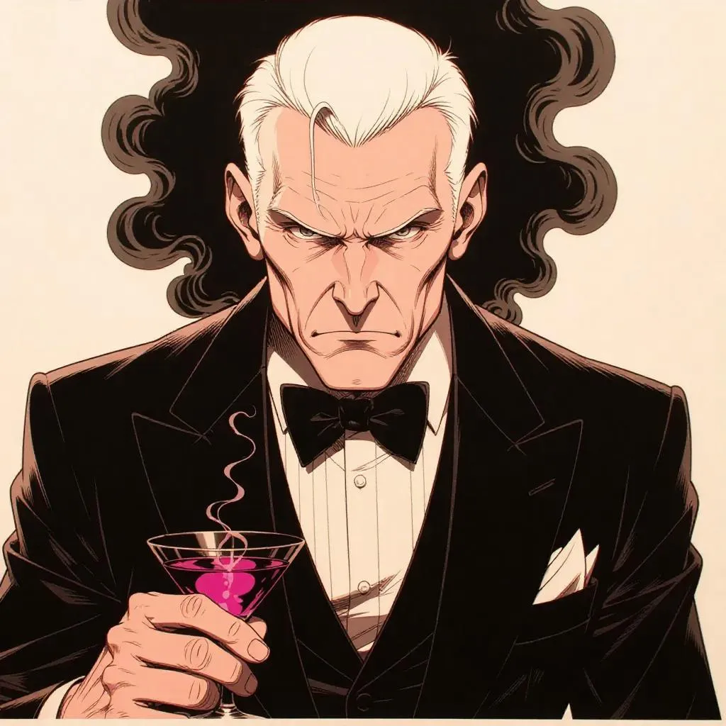 Generate a neo-noir ink drawing of an eccentric elderly partygoer using AI art tools. Vivago.ai transforms text prompts into striking contrast visuals with pink-tan, black, and white palettes. Perfect for creating vivid characters through AI image generators and creative storytelling.