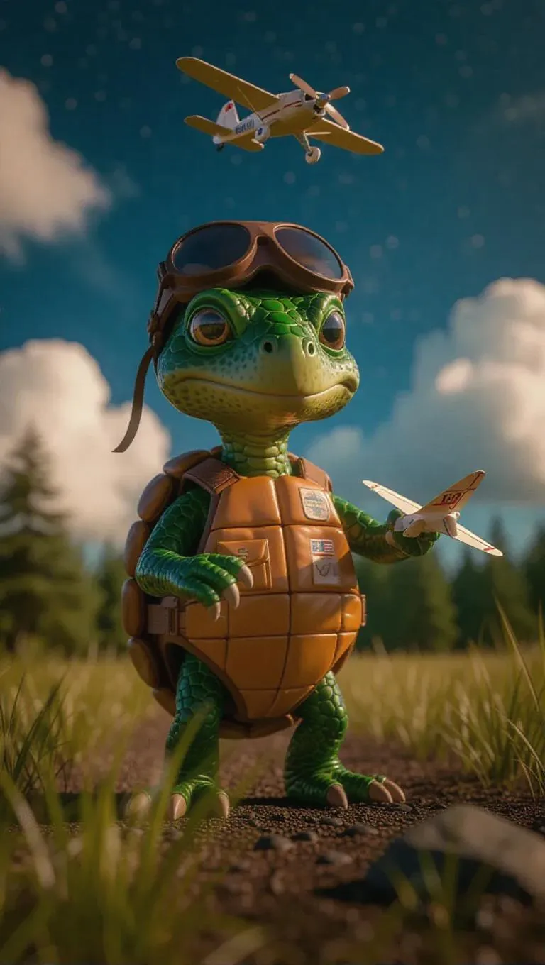 A fluffy, Jellycat-style little frog stands proudly on a hilltop, overlooking a vast, serene pond. Its large, expressive eyes are wide with wonder, and its soft, pastel green skin glistens in the dappled sunlight. The frog's tiny legs are playfully stretched, adding to its endearing charm. The pond around it is bathed in warm, tranquil light, creating a cozy and inviting atmosphere. The scene is rendered in a soft, pastel color palette, enhancing the overall cuteness and innocence of the frog.