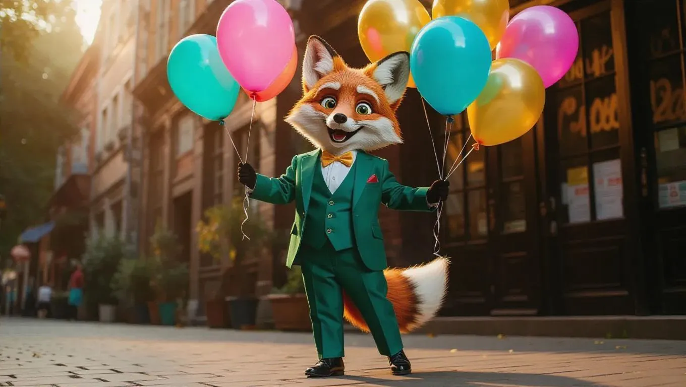 A fluffy, Jellycat-style mail truck with soft, rounded edges and large, expressive eyes is parked beside a charming fountain in a cozy, pastel-colored town. Its body is covered in plush, blue fur, with white paws and a tiny, adorable mailbox on top. The clear blue sky above is dotted with fluffy clouds, and soft, warm sunlight filters through, casting gentle shadows and highlighting the truck's cuddly texture. The scene exudes a playful, whimsical charm, perfect for a children's storybook.