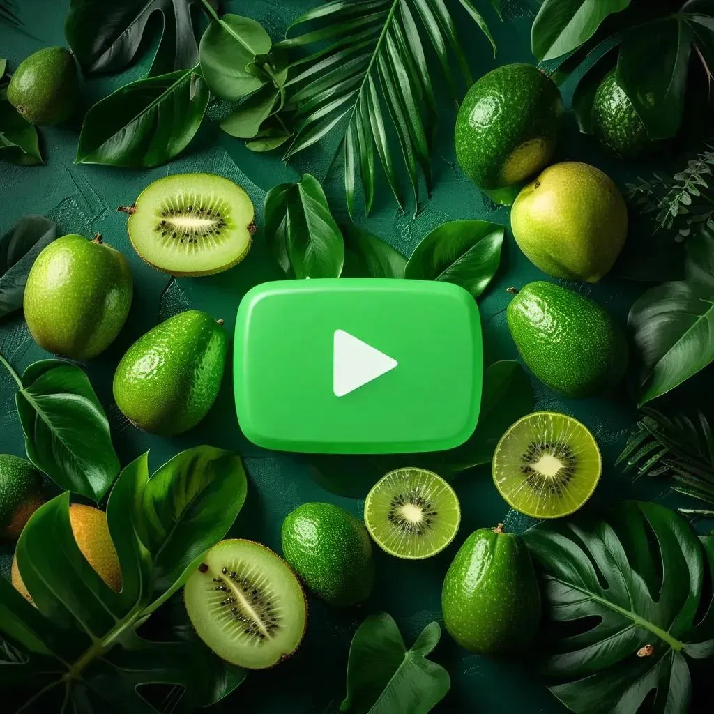 Generate a vibrant, AI-powered YouTube Subscribe button design with lush green hues and fresh fruits. Ideal for channels seeking eye-catching, organic visuals. Elevate your YouTube branding using this creative, SEO-optimized custom button to boost engagement and attract subscribers effortlessly.