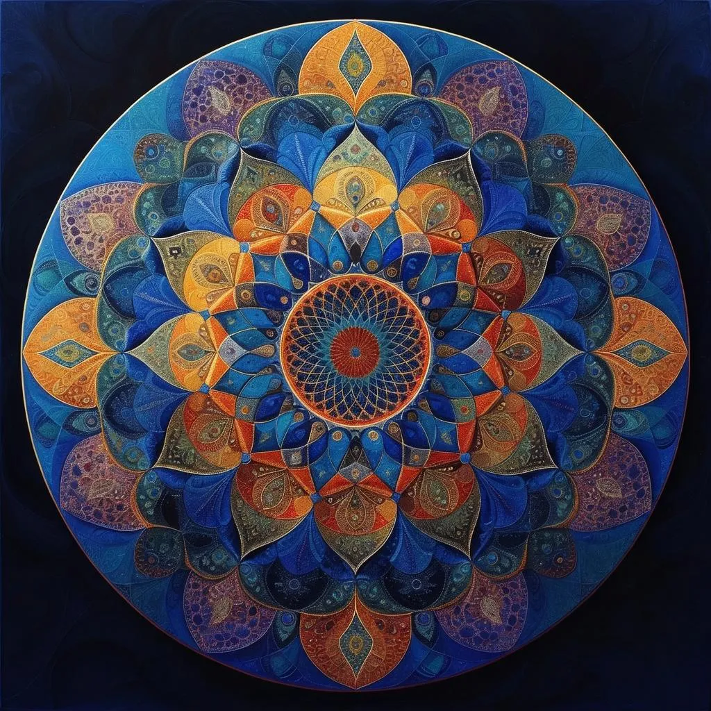 Generate mesmerizing AI mandala art with hyperbolic geometry patterns using Vivago.ai. Transform text prompts into intricate Poincaré disk designs featuring sacred symmetry, fractal precision, and vibrant color gradients. Explore infinite non-Euclidean patterns through AI-powered image generation tools for spiritual symbolism or mathematical visualization. Customize recursive motifs and tessellations effortlessly.