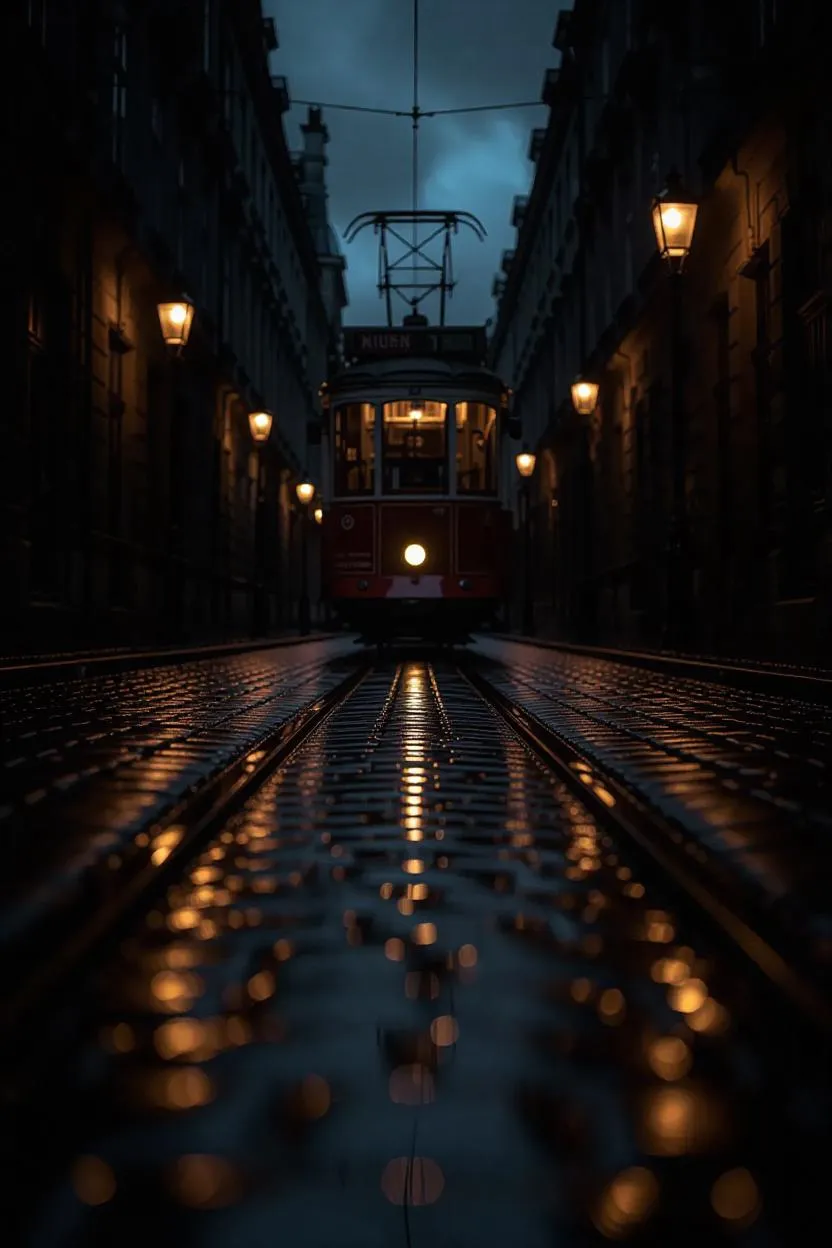 Generate spine-chilling AI visuals of a dark alley with eerie urban scenes: glowing tram lights, wet reflective floors, and ominous skies. Perfect for horror themes or suspenseful storytelling. Vivago.ai crafts atmospheric, cinematic imagery with professional-grade horror effects. Transform your prompts into haunting masterpieces effortlessly.